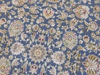 The Parimah Persian Rug is a true celebration of Persian artistry and refined living. Woven with an impressive 1500 reeds and 4500 density, this rug exemplifies the perfect blend of traditional elegance and modern craftsmanship. Its soft blue field, adorned with intricate floral motifs and framed by a delicate ivory border, brings an air of serenity and sophistication to any interior.